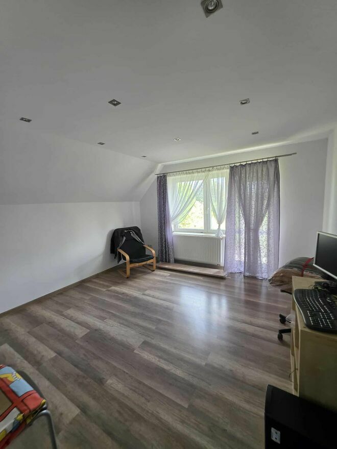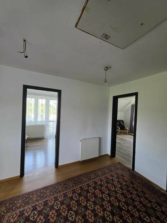 Dom jest murowany, w pełni podpiwniczony, gotowy do zamieszkania, idealny dla rodziny poszukującej przestrzeni i komfortu. Na parterze znajdują się dwa pokoje, kuchnia oraz łazienka. Na piętrze do dyspozycji są trzy pokoje oraz dodatkowa przestrzeń przeznaczona na drugą łazienkę.
