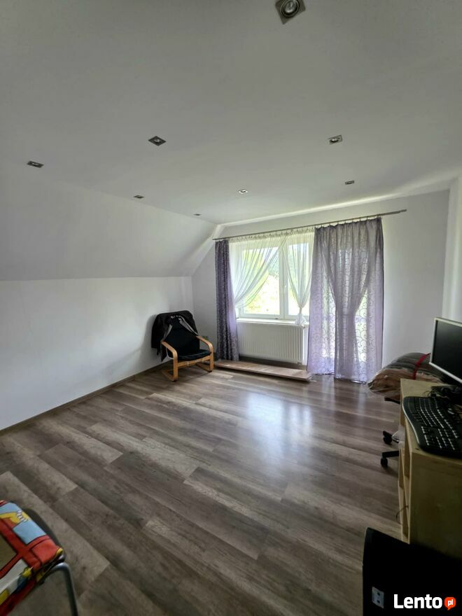Na sprzedaż dom wolnostojący, piętrowy, o powierzchni ok. 120 m², wybudowany w 2000 roku, położony na dużej, ogrodzonej działce o powierzchni 50 arów.Nieruchomość znajduje się w spokojnej okolicy, w otoczeniu zieleni, z dogodnym dojazdem z dwóch stron – co daje możliwość podziału działki na dwie części, np. pod budowę drugiego domu pokoleniowego lub na sprzedaż jako działka budowlana.